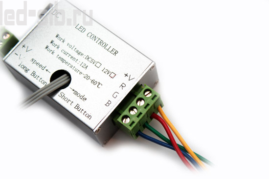 Специальный контроллер управляет цветом свечения разноцветной ленты. Проще говоря, контроллер – это маленькая коробочка, к которой подключаются блок питания с одной стороны и светодиодная RGB-лента – с другой.