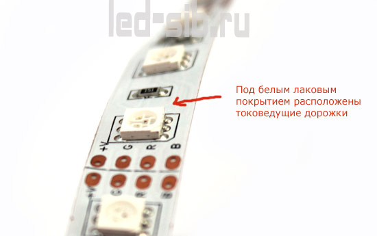 Создатели RGB-ленты, так сказать, объединили три разноцветные ленты в одну. Из этого следует, что многоцветная светодиодная ленты имеет четыре питающих провода, а не два: один основной и три по одному на каждый цвет.