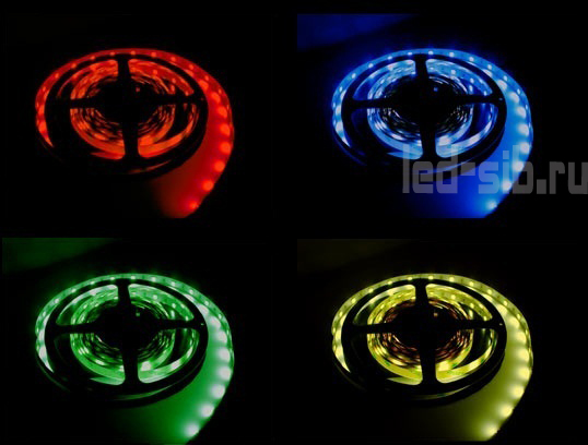 Отличаются разноцветные светодиодные ленты количеством светодиодов на один метр ленты. Чем больше их, тем ярче лента и, соответственно, дороже.